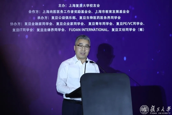 黎瑞刚在致辞中代表上海复旦大学校友会感谢所有校友的莅临,对复旦附属医院的抗疫医务工作者表示最诚挚的敬意,向携手抗疫的所有复旦校友、校友企业、合作机构表示衷心的感谢。