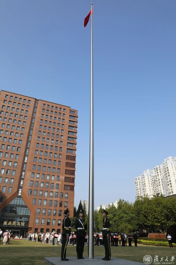 10月1日,复旦大学上海医学院2020年国庆日升旗仪式隆重举行。复旦大学党委副书记、上海医学院党委书记袁正宏,上海医学院党委副书记、副院长徐军与复旦上医师生员工代表400余人相聚在同生广场,面向国旗和院名石,共同为伟大祖国庆生。