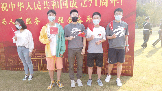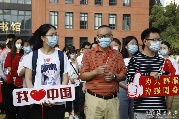 复旦上医师生员工们早早前来,手持对祖国的告白标语,为祖国母亲献上最诚挚的祝福。