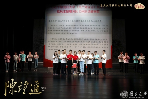 复旦大学常务副校长、上海医学院院长金力,复旦大学党委副书记、纪委书记金海燕,任重书院院长陈尚君,陈望道家属陈振新、朱良玉夫妇,学校相关职能部门负责同志,任重书院2020级新生和导师代表,以及各年级、各学院师生近1000人共同观看了话剧演出。