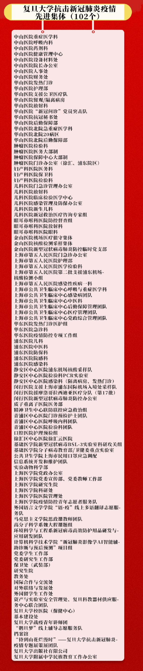 校党委书记焦扬强调,复旦大学能够经受住疫情的考验,是以习近平同志为核心的党中央总揽全局、坚强领导的结果,是市委市政府科学决策、周密部署的结果,是全校上下齐心协力、团结奋斗的结果,是全体复旦人的伟大壮举,是复旦115年历史上不可磨灭的英雄篇章。全校要深入学习总书记重要讲话精神,将伟大抗疫精神转化为干事创业、攻坚克难的不竭动力,更加奋发有为地落实立德树人根本任务、推进“双一流”建设,更加忠诚地守护城市安全和人民健康,更加自觉地服务党和国家工作大局,在新时代的赶考中交出复旦人更加优异的答卷。