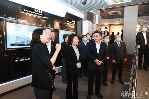 在上海宝山规划展示馆,结合媒体展示、触摸屏互动、全景模型展示等方式,通过“宝山印象”“埠通天下”“迁变万化”“蓝图擘划”等展区,中心组成员一行追溯了复旦在吴淞办学的历史,了解了宝山的过去、现在和未来,并从宝山的巨变中感悟了上海乃至中国在改革开放中快速发展的恢弘篇章。