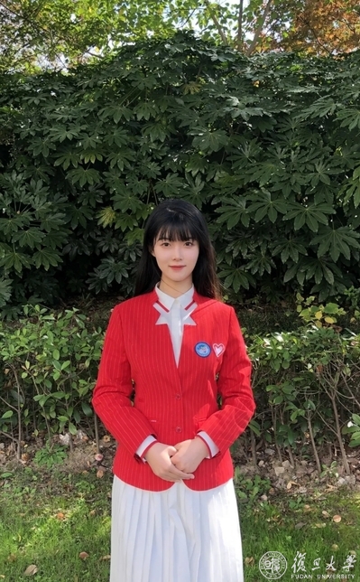 在这群复旦“小叶子”中,年龄最小的同学是来自经济学院的2020级本科新生张潇兮,还未满十八岁的她进入大学不久,就积极参与志愿活动,追寻心中一直以来对进博会的向往,最终成为“小叶子”的一员。