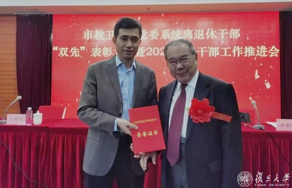 11月2日上午,市教卫工作党委系统离退休干部“双先”表彰大会暨2020年老干部工作推进会召开。复旦大学杨秉辉、王国安两位老同志荣获上海市离退休干部先进个人,杨秉辉还荣获“最美申城老干部”称号。杨秉辉受邀出席表彰大会。