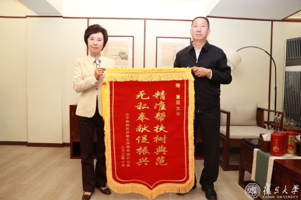 阿泽新对复旦为永平县脱贫攻坚提供的全方位多维度、真情真心的支持和帮扶表示感谢,赠送了寄托着永平县18.5万父老乡亲深情厚意的锦旗。