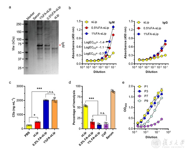 血液中天然IgM大量吸附在叶酸修饰的脂质体表面,造成脂质体的靶向功能丢失,增强了免疫原性并加速体内清除