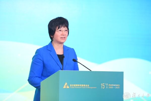 宗明在致辞中表示,成立十五周年以来,复旦管理学奖励基金会始终致力于推动中国管理学事业发展,推动管理学理论与中国国情相结合,提升中国管理学的国际影响力,成为中国管理学领域最具影响力、最具公信力的奖励基金会。她代表上海市政府向出席颁奖典礼的嘉宾表示欢迎,向2020年“复旦管理学杰出贡献奖”“复旦企业管理杰出贡献奖”“复旦管理学终身成就奖”的获得者表示祝贺。