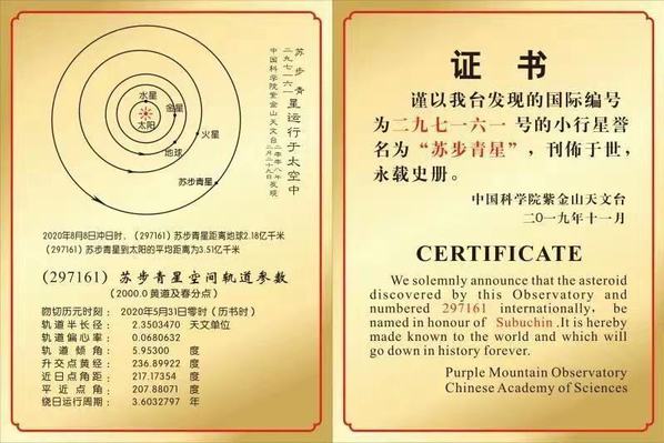 以我国著名数学家、中国科学院院士、复旦大学老校长、教授苏步青命名的小行星“苏步青星”命名仪式于今天(11月13日)下午在复旦大学邯郸校区举行,会上宣读了“苏步青星”国际命名公报,介绍了“苏步青星”发现和轨道运行情况。