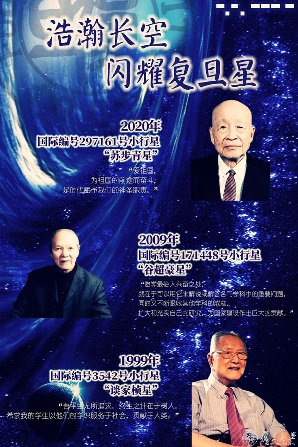 “如今这颗具有中国符号、科技特色、复旦大学元素、何梁何利光彩的苏步青星已经进入了宇宙星空,闪耀在太空星辰,永载史册。光荣属于杰出数学家、教育家苏步青先生,他的亲属,复旦大学师生,以及自强不息、自主创新、勇攀科技高峰的中国科学家。”