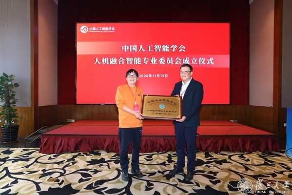论坛开始前,还举行了CAAI人机融合智能专业委员会成立仪式。仪式上,国务院参事、中国人工智能学会理事长、中国工程院院士戴琼海教授致辞并向专委会授牌。CAAI人机融合智能专委会是中国人工智能学会设立的第一个以复旦大学为依托单位的分支,它的成立将有助于进一步推动复旦大学在人机物三元协同与群智智能领域的布局,通过加强与国内相关高校、科研院所与产业界的联系与合作,助力我国在人机融合智能领域的核心理论、关键技术与产业应用的突破和发展,为我国人工智能科学技术进步与发展做出贡献。