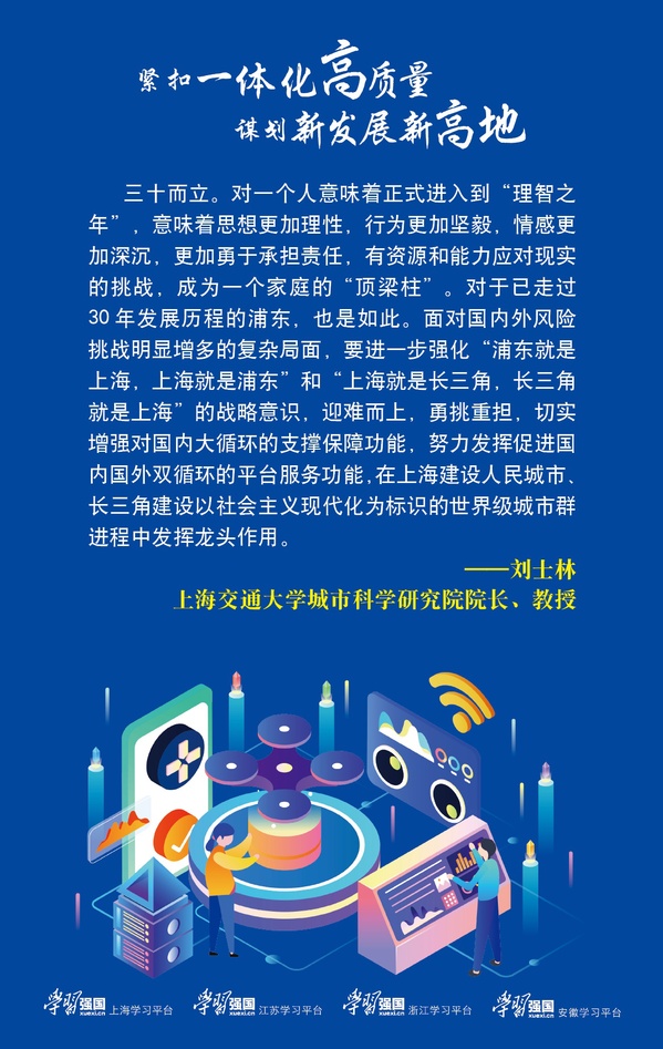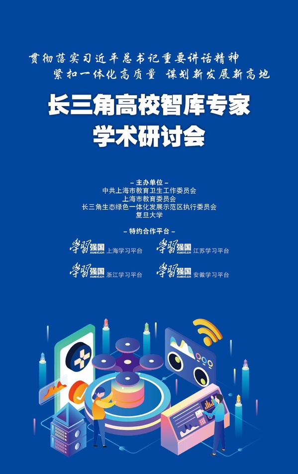 为深入学习习近平总书记系列重要讲话精神,围绕“长三角一体化发展”与“浦东开发开放30周年”等重要议题阐述学界观点、发出智库声音,11月16日,由上海市教卫工作党委、市教委、长三角生态绿色一体化发展示范区执行委员会和复旦大学共同主办的“紧扣一体化高质量,谋划新发展新高地”长三角高校智库专家学术研讨会在复旦大学举行。来自江浙沪皖多所高校的专家学者,就长三角一体化与浦东未来发展建设,交流思想,分享洞见。“学习强国”上海学习平台、“学习强国”江苏学习平台、“学习强国”浙江学习平台和“学习强国”安徽学习平台作为特约合作平台予以支持。