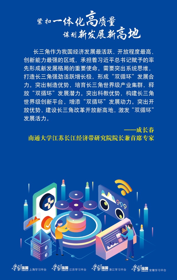 长三角一体化示范区拥有“跨省域、最江南、超级都市圈”的独特基因,承担着“打破行政边界,不破行政隶属”“探索跨区域一体化治理新机制”和“构建更大范围区域一体的创新链和产业链”的独特使命。示范区成立一年以来,在一体化制度创新上取得了32项开创性成果,在生态环保、互联互通、创新发展、公共服务四大领域开展了60个亮点项目,探索构建了“业界共治、机构法定、市场运作”的跨域治理新格局。未来,长三角一体化发展有哪些重点需要注意,长三角区域和长江经济带在全球产业链中又将如何不断升级,助力形成以国内大循环为主体、国内国际双循环相互促进的新发展格局?来看长三角高校智库的专家们给出了哪些建议。