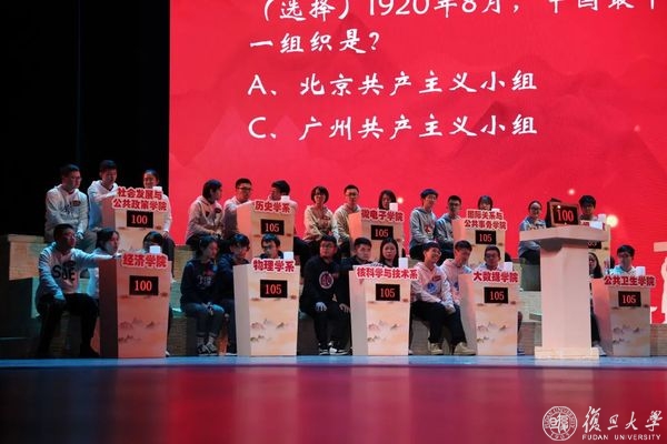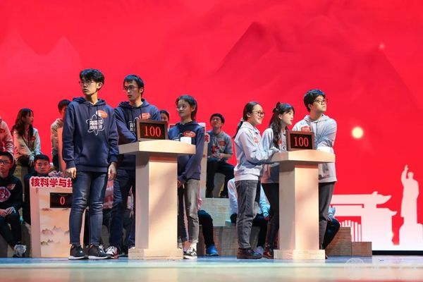 前不久,校学生会举办“学四史、千 人答”知识竞答,活动线上发布仅3天,就吸引了来自不同院系、不同年级的1009名师生参加线上初赛。竞赛题库是公开征集而来,由十几所院系提供总计800多道题目,经筛选调整,最终留下600多道,考点以“四史”为主、兼顾校史和学科发展史。最终,十个院系突出重围,组队参加了今晚在相辉堂举办的决赛。