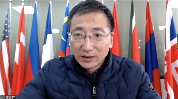 中国海洋大学国际合作交流处处长宋文红代表副校长李华军发言,介绍了学校结合定位和特色优势学科专业,对“一带一路”海上丝路、科教协作网络建设作出的工作,并对2021年推委会和分会可研究的课题给出了建议。