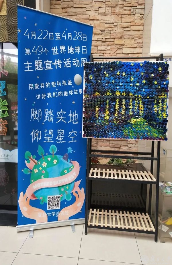 用会场回收的水瓶和食堂的剩菜头,打造生机盎然的食堂绿植角落;用演出活动收集到的1200个废弃塑料瓶盖“绘制”了梵高的名作《星月夜》和《罗纳河上的星夜》。连续开展“卿云森林”建设活动,针对学生个人低碳行为探索建立绿色低碳积分机制,让绿色低碳的观念变成一种可以量化的指标。以“垃圾分类新时尚,绿色生活我先行”为主题,帮助学生普及垃圾分类知识,鼓励学生进行生活垃圾源头分类,培养健康积极的生活方式。