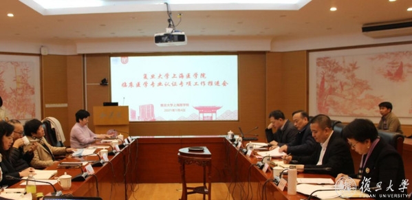 为进一步推进临床医学专业认证工作,2021年1月4日,复旦大学上海医学院召开临床医学专业认证专项工作推进会。复旦大学党委副书记、上海医学院党委书记袁正宏,复旦大学常务副校长、上海医学院党委副书记、院长金力,上海医学院党委副书记、纪委书记杨伟国,上海医学院党委副书记张艳萍出席,上海医学院副院长吴凡出席并主持会议。上海医学院相关职能部处负责人、临床医学专业认证工作专班成员等20余人参加会议。