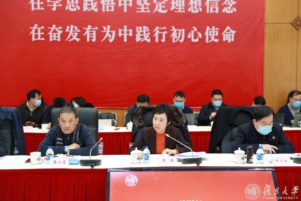 1月12日下午,复旦大学2020年度院(系)党委书记抓基层党建工作述职评议会在邯郸校区逸夫科技楼举行。教育部直属高校党建工作联络员、同济大学原常务副校长陈小龙同志到会指导。校党委书记焦扬、校长许宁生等校领导出席会议,校党委副书记、副校长周亚明主持会议。