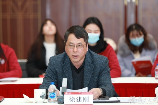 金冲及、徐建刚、陈振新、王健儿、侯咏以及复旦大学《共产党宣言》展示馆党员志愿服务队队员程俏媛在座谈会上先后作交流发言。