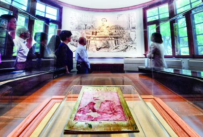 推开国福路西侧的一扇黑漆大门,序厅里,陈望道1920年翻译的《共产党宣言》中文首译本浮雕静静陈列着。将一部原文为德语的《共产党宣言》译成汉语有多困难?陈望道之子、复旦大学电子工程系退休教授陈振新介绍:“从文字本身来讲,《共产党宣言》要翻译成别的文字很困难,这是恩格斯讲的,他说要把《共产党宣言》翻译成其他国家文字是异常困难的。”当时,陈望道手头仅有的参考工具除了英文版和日文版《共产党宣言》,就只有英汉字典和日汉字典了。