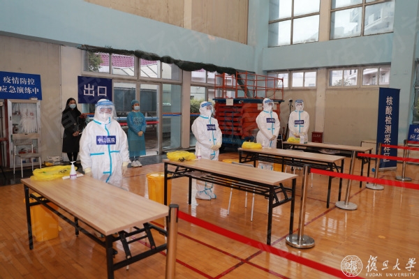校党委书记焦扬、校长许宁生等学校疫情防控工作领导小组成员,相关部门、部分院系和科研机构负责同志在复旦大学邯郸校区北区体育馆观摩了本次演练。