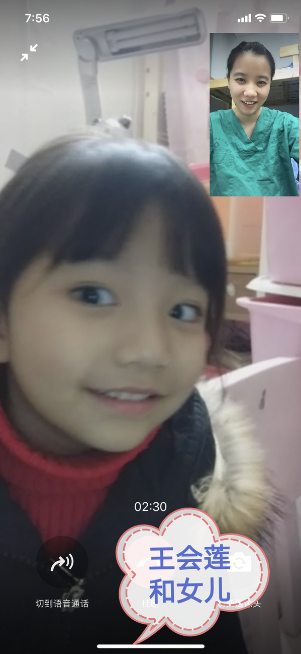 儿科医护人员与家人微信视频拜年