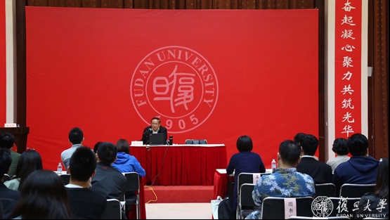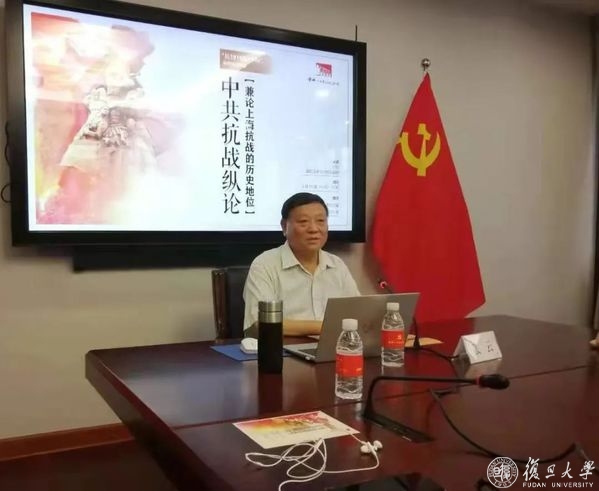 上海市新四军历史研究会会长刘苏闽在复旦大学为学生作报告