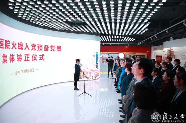 日前,华山医院党委为25名抗疫前线火线入党的预备党员举行集体转正仪式。