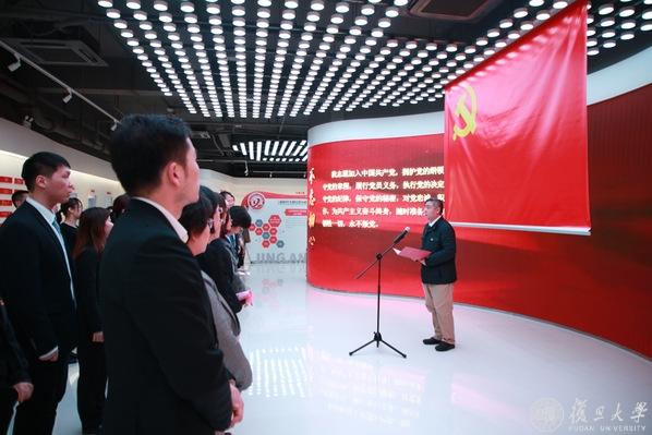 面对党旗,华山医院副院长、援鄂医疗队总指挥、第三批援鄂医疗队临时党支部书记马昕同志带领全体在场的华山党员重温了入党誓词。当铿锵的宣誓声响起,现场很多人不禁潸然泪下。