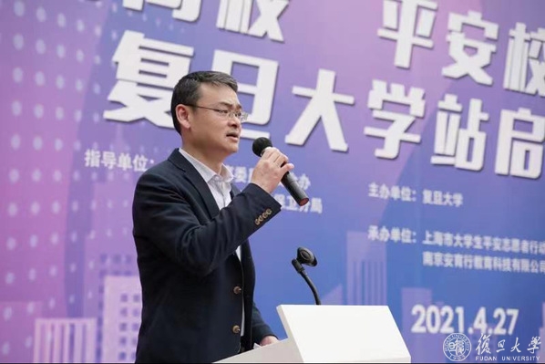 复旦大学党委学生工作部部长徐阳在致辞中表示,进入新发展阶段,努力建设高质量教育体系离不开校园的安全稳定,安全是发展的前提,发展是安全的保障。复旦大学高度重视校园安全工作,广泛开展安全教育活动,切实维护校园长治久安。“让我们共同携手,积极构建新时代校园安全共同体,努力推动校园安全高质量发展!”