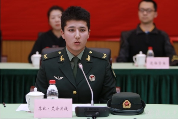“当了兵才知道祖国的山河在心中,当了兵才知道军人热血铸忠诚。”听过了退伍老兵的故事,现役学生苏比·艾合买提的发言再次展现了军人风貌与当代青年风采。苏比分享了她一步步突破身体和心理极限,从一名普通学生成长为优秀士兵的经历。聆听她的故事后,与会代表们深受感动。大家还观看了现役复旦大学生士兵从部队发回的视频集锦,进一步了解了他们的军营生活。