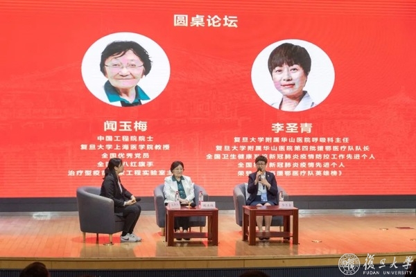 5月14日,在复旦大学上海医学院明道楼二楼报告厅里,一场生动精彩的党课开讲。中国工程院院士、复旦大学上海医学院教授闻玉梅和复旦大学附属华山医院呼吸科主任、第四批援鄂医疗队队长李圣青受邀来到复旦大学克卿书院第十届“明道讲堂”,开讲上海医学院党史学习教育专题党课。党课现场,两位嘉宾以“印初心、担使命”为主题,与复旦上医师生们共同回顾了新时代医学事业发展的成就,以及复旦上医人心怀责任、勇于担当的奋斗历程。