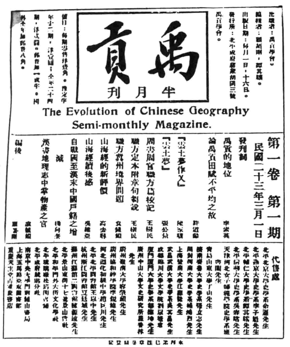 与革命擦肩而过、转而投身学术的谭其骧,并未忘记救亡图存的历史责任。有感于“中华民族没有一部像样的历史书”,1934年,谭其骧与其师顾颉刚共同创办了一个专门研究中国沿革地理为宗旨的“禹贡学会”,以我国最早一篇系统描述全国自然、人文地理的著作——《禹贡》作为名称;并决定创办《禹贡》半月刊,作为学会的机关刊物。发刊词中,谭其骧写道:“我们受帝国主义者的压迫真够受了……大家希望有一部《中国通史》出来,好看看我们民族的成分究竟怎样,到底有哪些地方是应当归我们的。”