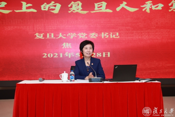 回望整个新民主主义革命时期,她向大家生动阐释红色基因如何诞生于复旦人对真理的执著追求之中,如何彰显于艰辛奋斗和生死考验之中。