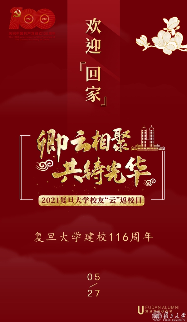 在迎接中国共产党成立100周年,庆祝复旦大学建校116周年的日子里,5月27日,海内外复旦校友“云端”相聚,通过复旦大学校友会发布的2021“云”返校日微网站,一键“云”返母校,踏上满载真情的返校旅程,在奋进的时代强音中,再次凝聚助力复旦大学迈向世界一流大学前列新征程上的“校友力”。