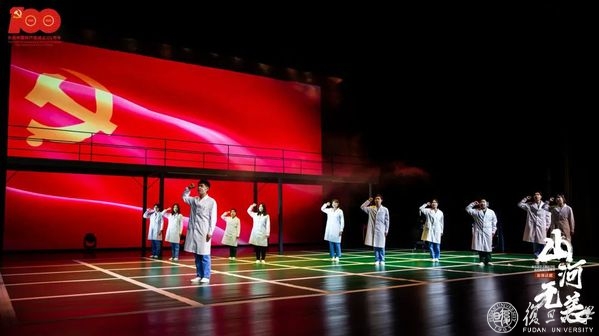 为迎接中国共产党成立100周年,复旦大学上海医学院抗疫精神主题教育原创话剧《山河无恙》近日在复旦大学相辉堂、中山医院福庆厅再度上演。经历半年多的沉淀和打磨,该剧以全新的制作、升级的配置亮相舞台,进一步弘扬“生命至上、举国同心、舍生忘死、尊重科学、命运与共”的伟大抗疫精神,展现了新时代医护共产党员的精神风貌。
