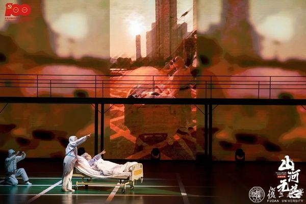 2020年新冠疫情肆虐,复旦上医人白衣执甲、逆行出征,融入全国和上海抗疫战队,他们牢记“为人群服务、为强国奋斗”的使命责任,在抗疫一线英勇奋斗,做到国有召、召必战、战必胜。为更好地用好抗疫斗争这本最生动的“教材”,复旦大学上海医学院编排创作话剧《山河无恙》,以抗疫斗争中复旦上医师生的原型故事改编,通过医学生演绎师长的战疫故事,展现广大医务、科研工作者的事迹和精神。在2020年首演期间,1000多名师生观看了演出,引起了广泛共鸣,在校内外产生良好反响。经上海市教卫工作党委推荐,成功入选教育部2021年“高校原创文化精品推广行动计划”。
