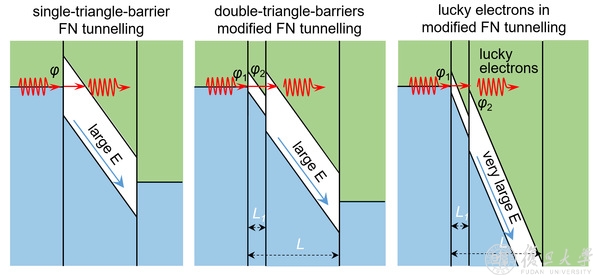 图1.双三角隧穿势垒超快电荷存储机理示意图