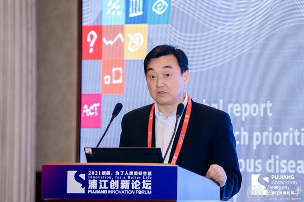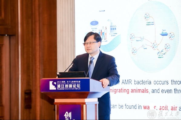 许宁生通过视频连线致辞,对2021浦江创新论坛的召开表示祝贺,向线上线下齐聚未来科学分论坛的专家学者和青年才俊表示欢迎。他指出,气候变化造成的生物多样性丧失、极端天气气候事件频发、海洋酸化等给人类生存和发展带来了严峻挑战,正在严重威胁着人类的生命与健康。世界各国只有心往一处想,劲往一处使,才能打赢这场气候战斗。他表示,希望专家们的真知灼见在论坛上碰撞出新的思维火花,在交流互鉴中形成更多共识,为更好地应对气候变化威胁、实现一体化健康提出前瞻性观点见解,助力早日实现绿色低碳及可持续发展目标。