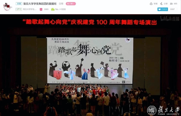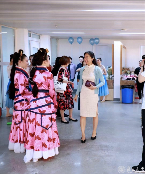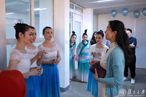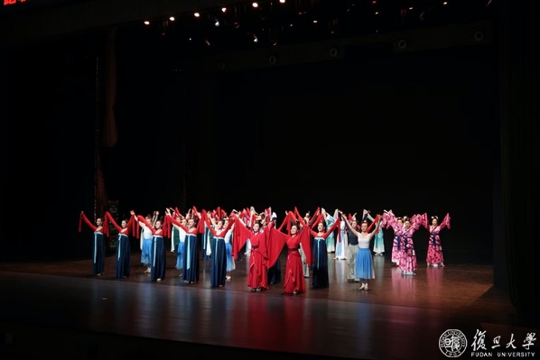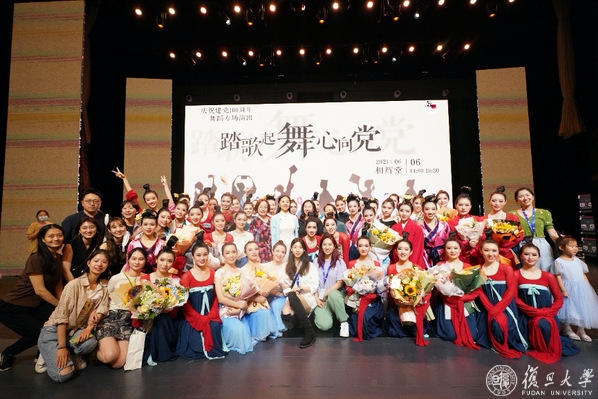6月6日晚,复旦大学学生舞蹈团“踏歌起舞心向党”庆祝中国共产党成立100周年舞蹈专场在相辉堂上演。复旦学子以舞蹈作品传承红色基因,弘扬传统文化,展现时代风貌,献礼建党百年。为了回应广大师生的热烈期待,舞蹈团于演出当日加演一场,并在线上直播,两场演出累计辐射观众超过3000人次。复旦大学党委副书记尹冬梅亲临现场观演,并来到后台亲切慰问演职人员。