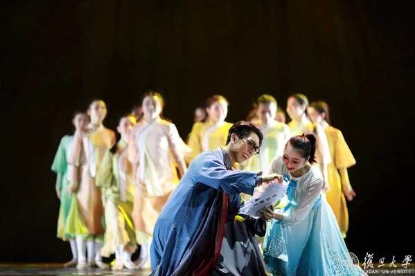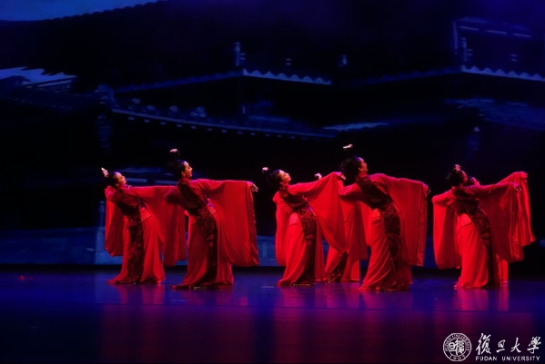 在上海市教委、上海市舞蹈联盟的支持下,复旦大学学生舞蹈团成立了复旦大学中华优秀文化艺术吴越踏歌传承基地,用舞蹈的形式发掘、传承、弘扬中国传统艺术,开展文化寻根,树立文化自信。在汉唐古典舞专家老师的指导和帮助下,舞团学子结合历史考据和今人理解, “响屐舞”呈现在复旦校园,以传统的平仄起伏谱写新时代的华彩乐章,展现出春秋时期百家争鸣下的自然唯美,自由洒脱的舞蹈风格和审美韵律。2020年1月,这支舞蹈也登上了欧洲巡演的舞台,以舞蹈为媒,编织文化交流的纽带。