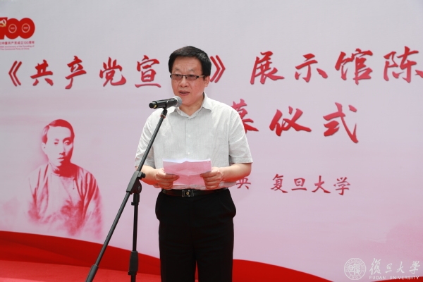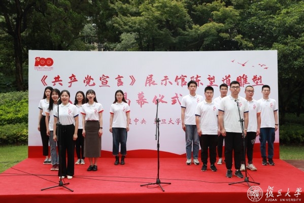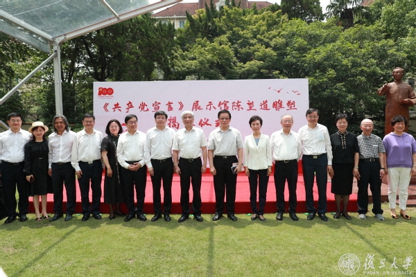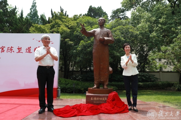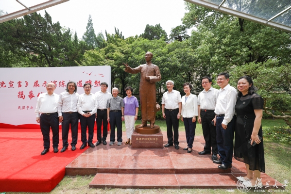6月11日,陈望道雕塑揭幕仪式在复旦大学《共产党宣言》展示馆前广场隆重举行。全国人大常委会副委员长、民盟中央主席丁仲礼,复旦大学党委书记焦扬、校长许宁生,民盟中央副主席、全国人大常委、中国文联副主席张平,民盟中央副主席、民盟上海市委主委、上海市人民政府副市长、全国政协常委陈群,全国政协常委、中国美术馆馆长、著名雕塑家吴为山,上海市教育发展基金会理事长、第十届上海市政协副主席王荣华,上海市人大常委会秘书长赵卫星,上海市教育委员会主任王平,民盟上海市委专职副主委杨德妹、丁光宏,民盟上海市委秘书长费俭,上海民盟同舟公益基金会理事长廖大伟,复旦大学党委副书记许征,党委常委、统战部部长赵东元,复旦大学退休教授、陈望道之子陈振新等家属代表,“星火”党员志愿服务队队员代表,马克思主义学院“望道班”学生代表以及学校师生代表出席仪式。仪式由陈群主持。