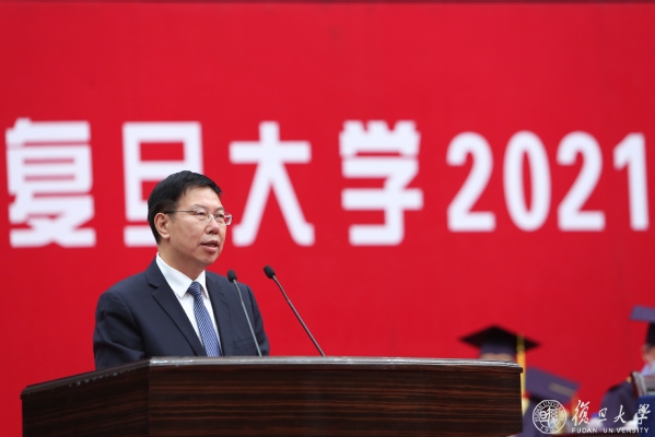 许宁生代表学校为同学们送上祝福。一是胸怀全球,树立远大目标。要对标高质量发展要求和人类命运共同体愿景,站在更高层次的历史方位上定位自身发展。大格局才有大作为,希望同学们今后不论身处何方、从事何种职业,都要树立大志、把握大势,从更宏大的视野和宽广的格局去思考、解决问题,从推动人类社会共同发展进步的角度去定位自身发展,积极履行社会责任与使命。二是永远追求卓越,勇攀创新高峰。一直以来,复旦人始终站在时代潮流前沿,敢为人先,敢于突破,以聪明才智贡献国家,以开拓进取服务社会。希望同学们常怀创新意识,提升创新能力,勇于攻克关键核心技术,敢闯创新“无人区”,开拓新领域争第一,做掌握未来、引领未来的顶尖人才。三是主动担当贡献,服务国家民族。有越来越多的毕业生主动投身西部建设、投身重点领域和重点行业,在最美的青春年华里扎根祖国和人民最需要的地方,在奉献家国的强国梦中书写奋斗华章。希望大家扎根社会、扎根人民,以所学服务社会,无畏艰难困苦,在实干中成就一番事业。