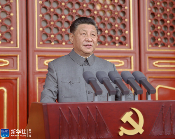 习近平表示,一百年来,我们取得的一切成就,是中国共产党人、中国人民、中华民族团结奋斗的结果。以毛泽东同志、邓小平同志、江泽民同志、胡锦涛同志为主要代表的中国共产党人,为中华民族伟大复兴建立了彪炳史册的伟大功勋,我们向他们表示崇高的敬意。