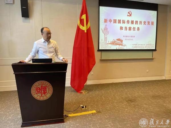 6月25日,副校长陈志敏为新闻学院第三党支部、学校文科科研处、文科学报党支部、发展研究院党支部等支部主讲专题党课“新中国国际传播的历史发展和当前任务”,并与各支部成员就我国国际传播的研究与实践展开交流研讨。