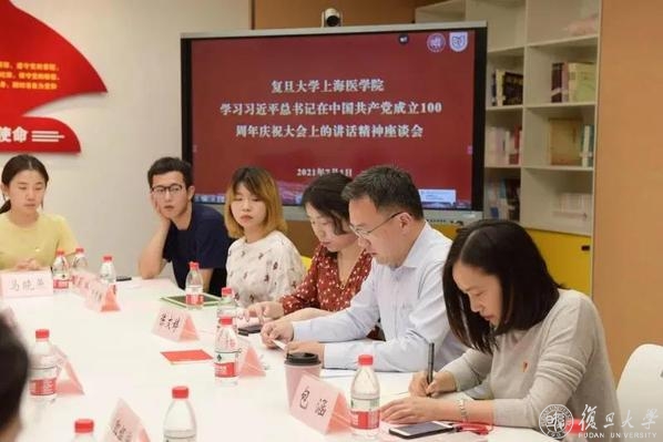 7月1日,校党委常委、上海医学院党委副书记、副院长徐军参加医学院学生党员学习贯彻习近平总书记“七一”重要讲话精神座谈会,交流学习体会,共话青年责任。他说,复旦上医青年特别是青年党员要牢记总书记嘱托,践行“请党放心、强国有我”的青春誓言,更好肩负实现中华民族伟大复兴的历史重任,勇当青年先锋,走在时代前列。