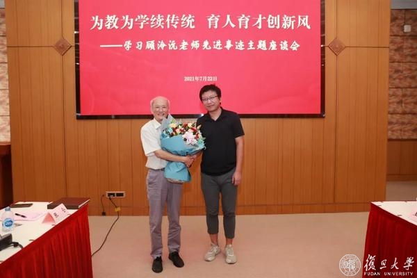 7月22日,顾泠沅应邀回到母校,面向复旦大学师生和复旦基础教育集团老师做了“为教为学续传统 育人育才创新风”的主题座谈。会前,复旦大学副校长徐雷与顾泠沅亲切会面并做交流,祝贺他在数学基础教育方面取得的成绩,并就基础教育人才培养问题进行深入探讨。