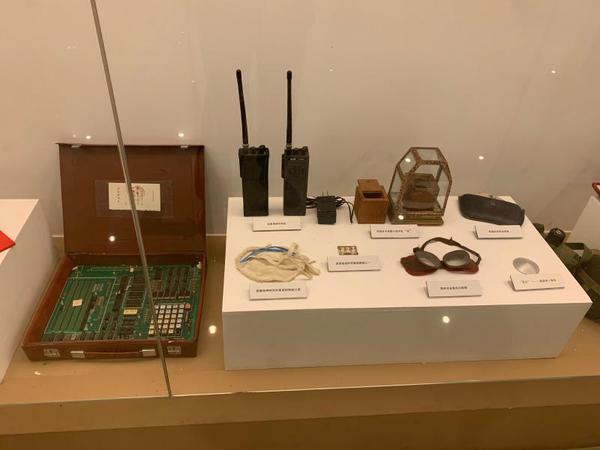 现在展厅的进门处,写着大大的“两弹一星”精神——“热爱祖国、无私奉献,自力更生、艰苦奋斗,大力协同、勇于登攀”,厅内围绕“光辉历程”“激情岁月”“金色晚年”等主题布展,既有存放原子弹最小部件的“匣”、接触特种材料时使用的特殊口罩,还有防风沙眼镜、对讲机、特制工矿靴,以及大家的毕业证书荣誉证书等。