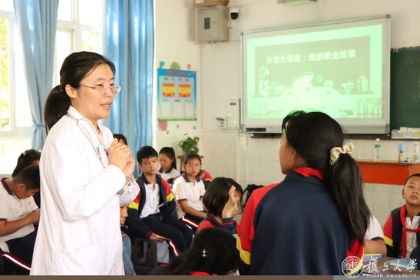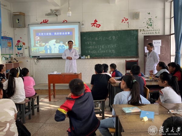 除了医疗,教育也是“乡村振兴”战略持续实施的重要组成部分,也是复旦大学帮扶永平县最有成效的工作,教育合作目前已逐步深入到乡镇,村级小学。我们有幸参与了复旦大学2021年“沪滇牵手计划”(永平县农村儿童夏令营项目),向永平县杉阳镇阿海寨小学的学生作医生职业介绍,让他们了解医生职业,在他们心中播下做医生的种子。