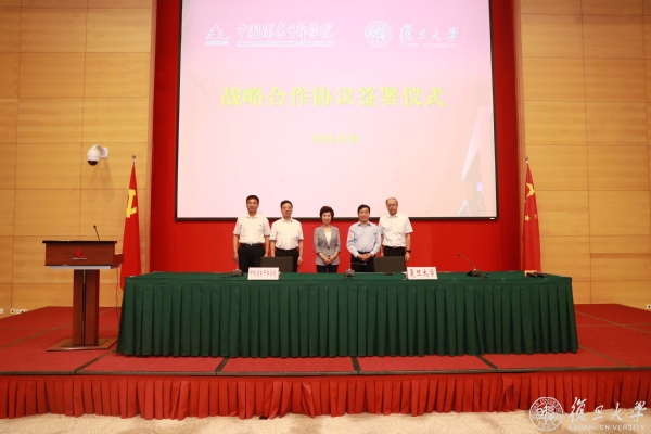 为贯彻落实上海市支持中国浦东干部学院建设和发展协调小组会议精神,巩固和加强双方既有合作成果,继续丰富合作内涵,共同提升人才培养和科学研究质量,2021年8月30日上午,复旦大学与中国浦东干部学院签署战略合作协议。复旦大学党委书记焦扬、校长许宁生、中国浦东干部学院分管日常工作的副院长、机关党委书记曹文泽出席签约仪式。复旦大学副校长陈志敏,中国浦东干部学院副校长刘靖北代表双方签署战略合作协议。签约仪式由复旦大学党委副书记、副校长周亚明主持。