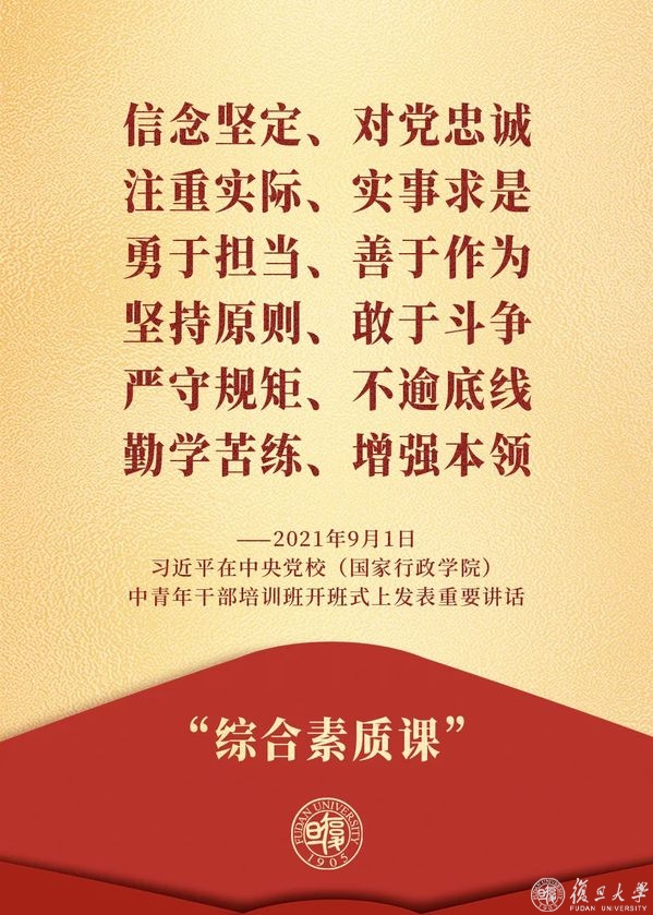 焦扬指出,总书记在中央党校(国家行政学院)2021年秋季学期中青年干部培训班的“开班第一课”,是2019年以来第五次为中青班开班讲课,也是踏上第二个百年新征程后第一次为中青年干部授课,从六个方面48个字凝练出民族复兴伟业栋梁之材的必备素质,立意高远,意义重大。如果说前四次分别是“理想信念课”“斗争精神课”“实际能力课”“传统教育课”,那么这次就是一堂“综合素质课”。